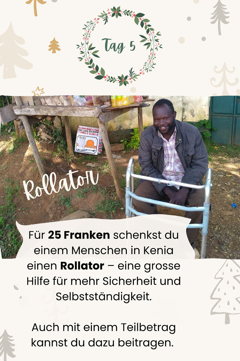 Jeden Tag öffnet sich ein Türchen unseres Adventskalenders mit einem Wunsch, der Menschen mit Behinderungen und ihren Familien Hoffnung schenkt. Der Betrag kann frei gewählt werden – jeder Beitrag hilft, Grosses zu bewirken. Folgt uns auf Instagram oder Facebook, um die täglichen Stories zu sehen.